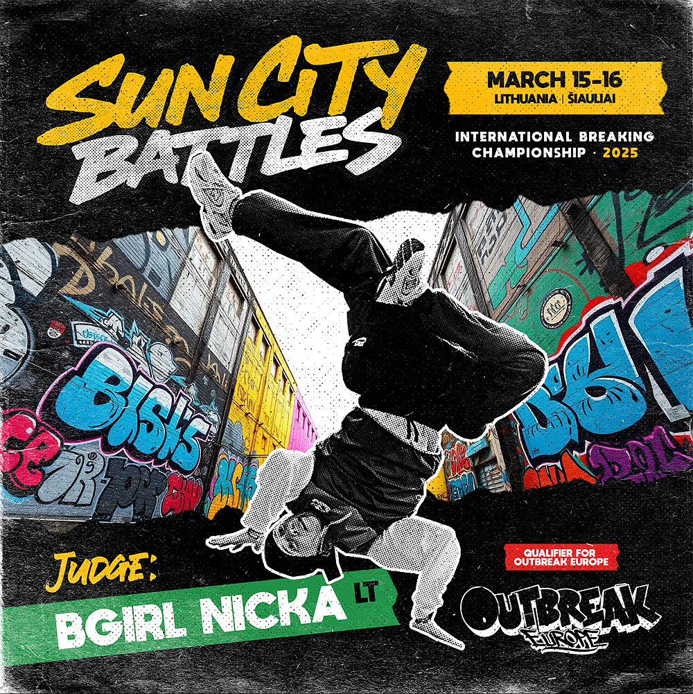 The main Sun City Battles event will bring together the best breakers from Lithuania and around the world to compete for a chance to travel to the prestigious Outbreak Europe event and win cash prizes.